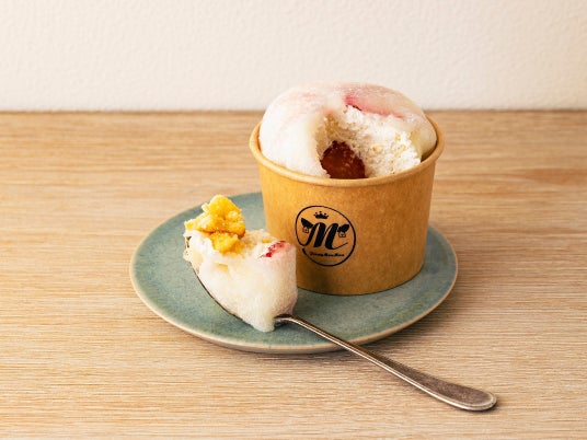 那須のジャージー牛乳を使ったスイーツ店から、カップ入りいちご大福が登場。おもちのように伸びる求肥の下には、ミルク感たっぷりの生クリーム、さらに栃木県産いちご、ジャージー牛乳を使ったクッキーとふわふわなスポンジケーキも入っており、味わいや食感の違いも楽しめます。