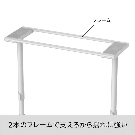 (3)2本の突っ張り棒を連結したフレーム構造2本の突っ張り棒をフレームで連結しているため、突っ張り棒1本ずつの構造に比べて外れにくくなっています。さらに、広い接触面で応力を分散するため、天井を突き破りにくいメリットも。