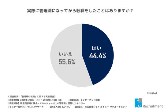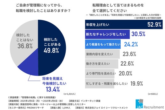 株式会社ジェイ エイ シー リクルートメント(本社:東京都千代田区、代表取締役:田崎 ひろみ)が運営する転職サイト(https://www.jac-recruitment.jp/)にて、課長・マネージャー以上の管理職1,044名を対象に「管理職の転職」に関する実態調査を実施しました。