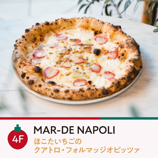 <いちご×フレンチタルト>、<いちご×4種チーズのピザ>など各店シェフが自信を持っておすすめする素材と苺のコンビネーションメニューに注目。