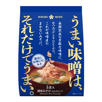 三年以上の長期熟成味噌󠄀を贅沢に使った即席みそ汁。味噌󠄀のおいしさを引き出す「味噌󠄀、かつおぶし、具」の究極にシンプルな設計です。