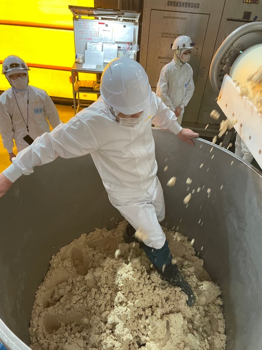 ひかり味噌󠄀株式会社(長野県諏訪郡下諏訪町、代表取締役社長 林善博、以下 当社)は、伝統的な手法を用いた、年に一度の味噌󠄀の仕込み「大寒仕込み」を2025年1月31日(金)に、長野県上伊那郡飯島町の飯島グリーン工場にて実施いたしました。当社が1985年より守り続ける伝統行事「大寒仕込み」は、40回目の開催となりました。味噌󠄀づくりの営みができることへの感謝や、先人たちの味噌󠄀にかけた想いの伝承、さらには、ものづくりの本質の継承という意義をもち、社員が味噌󠄀づくりの原点に立ち返ることができる場所です。今年は、味噌󠄀の醸造部門以外の社員も技術を継承いたしました。また、イギリスの取引先にもご参加いただき、伝統的な技術や工程を通して、当社の味噌󠄀づくりに対する真摯な想いをお伝えいたしました。