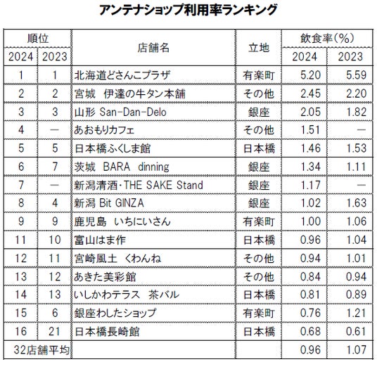 3位の宮城ふるさとプラザは2024年12月で現在の池袋の店舗は閉店。2025年1月に運営体制を変えて日本橋茅場町に期間限定でオープン予定だ。