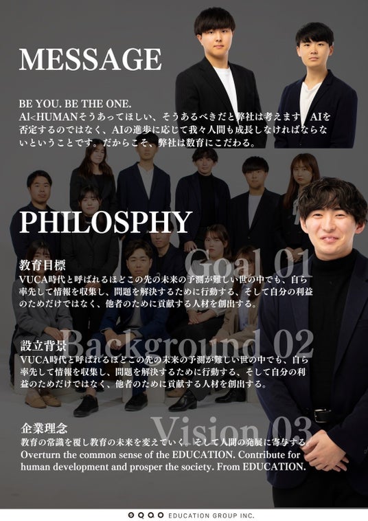 EQAO Education Group(株式会社EQAO教育グループ)は、「教育の常識を覆す」ことを目指し、「グローカル」に教育事業を展開するベンチャー企業です。