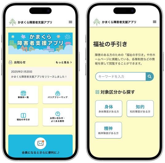 鎌倉市では、2022年5月25日に公布・施行された「障害者情報アクセシビリティ・コミュニケーション施策推進法*1」の趣旨を踏まえ、障害のある方が必要な情報やサービスをいつでも取得・利用できる環境を整えるため、ミラボが開発する「障害者支援アプリ」をベースに鎌倉市のオリジナルアプリとしてリリースしました。