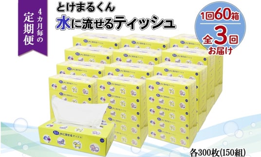 北海道 倶知安町4ヵ月毎 全3回 とけまるくん 水に流せる ティッシュ 150組 計60箱