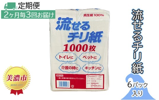 岐阜県 美濃市【2ヶ月毎3回お届け】流せるチリ紙 6パック入り
