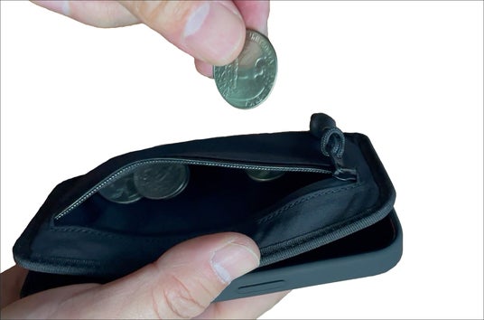 ストレッチ素材のため開口部が大きくガバッと開きます。財布一体型の多くは、小銭の収納スペースはあるが製品が厚いものや、カード類は収納できるけど小銭の収納スペースがなく製品が薄いものになります。小銭も入れたいけど分厚いケースは持ちたくないから財布一体型のケースを諦めている方は多いのではないでしょうか。Wrapupは表面のファスナーを開き開口部を広げると、伸縮性の素材により伸びながら広がります。ポケットの中身がよく見えて、サクッと小銭の出し入れが可能です。収納量により素材が伸縮するので、スリムかつ大容量の両立を実現しました。
