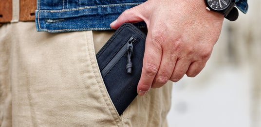 未収納時は、厚さ16mm(最薄部)。実使用レベルでも厚さ23mm(カード 5枚、紙幣5枚、コイン10枚)なのでポケットに入り、電子決済とあわせてメイン財布としてご利用いただけます。さらに薄さを追求するとカードは2~3枚、紙幣1枚、小銭を入れない場合、厚さ20mm程度におさまります。そもそも厚い製品では体感できない、収納量に応じて厚さが変化するスリムかつ大容量の財布一体型はWrapupだけ!