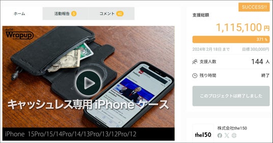 株式会社the150は、(所在地:東京都大田区矢口)復元力の高いストレッチ素材の採用により、収納量に応じて伸縮する「薄さ」と「収納力」を備えたiPhoneケース「Wrapup」を先行予約販売開始いたしました。