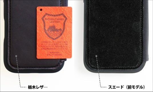 ケース背面には、世界に誇る最高峰の天然素材「栃木レザ―」を使用。フルベジタブルタンニン鞣しという伝統的な製法で作られ、革の風合いを損なわないよう細心の注意を払い作られた、日本有数の革です。化学薬品を使わない自然製法のため美しいエイジングに導いてくれます。