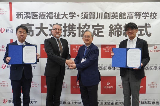 NSGグループの新潟医療福祉大学は、7月8日(月)に高校生に対して医療系資格・職業についての理解を深める機会を創出し、将来地域社会に貢献する有為な人材を育成することを目的に、福島県立須賀川創英館高等学校と、高大連携協定を締結しました。