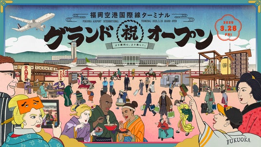 福岡国際空港株式会社は、2025年3月28日(金)に福岡空港国際線旅客ターミナルビルのグランドオープンを迎えるにあたり、印象的なデザインを使い統一的にPRすることで、生まれ変わる福岡空港国際線の認知度向上を図るため、キービジュアルを制作しました。