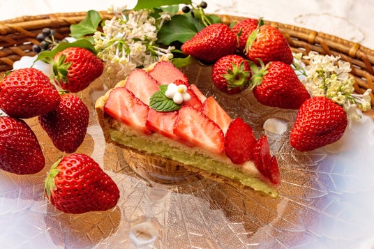 今年の新作は、イチゴの華やかな香りいっぱいの“きらぴ香”や濃厚な甘さとハリのある食感が特徴の“空浮いちご”、甘酸のバランスが良く濃厚な味わいの“紅ほっぺ”を使用し、ピスタチオ、チョコレート、ココナッツなど様々な食材と合わせた3種類のタルトが登場いたします。