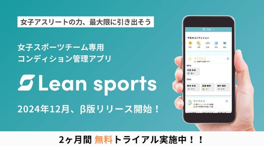 「生理で悩む人をひとりにさせない社会を創る」をミッションにかかげる株式会社LEAN(代表:立道友緯)は、2024年12月より、女子スポーツチーム専用コンディション管理アプリ「Lean sports(リーンスポーツ)」β版をリリースいたしました。