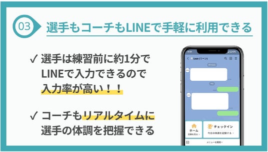 専用アプリのインストール不要で、選手もコーチもLINEから利用できます。 Lean sportsの便利な使い方や、月経周期それぞれの特徴など、女性アスリートのためのお役立ち情報も配信されます。
