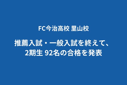 サッカー元日本代表監督の岡田武史氏が学園長を務める「FC今治高等学校 里山校」(以下、FCI)は、2025年度入試を終えて92名の合格を発表したことをお知らせいたします。