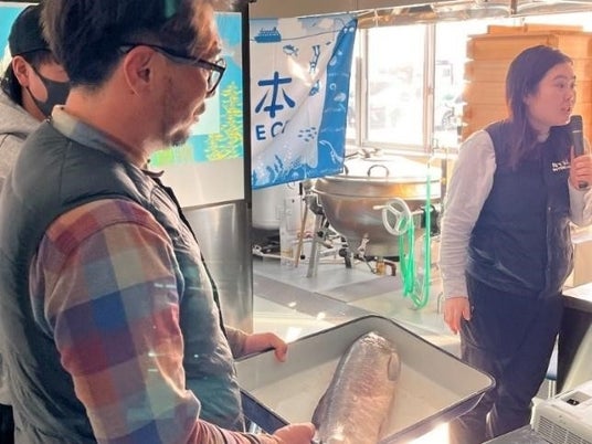 一般社団法人 海のごちそう推進機構と宮城県東松島市農林水産課は、魚を実際にさばくこと、地域の海洋変化や魚種の変遷を学ぶこと、さらに「海を味わう十の技法」による調理体験など、日本の豊かな海の食文化を継承し、輪を広げる取り組み「日本さばける塾 in 道の駅 東松島」を2月2日(日)に開催し、27名(小学生14名、中学生1名、保護者12名)が参加しました。