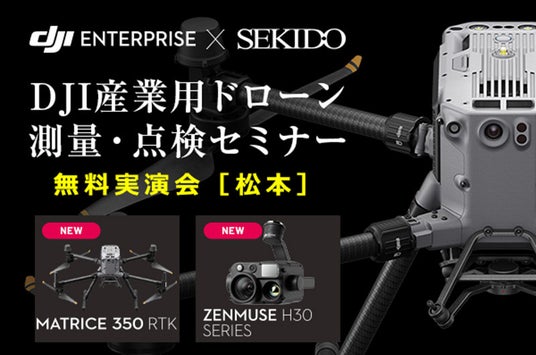 DJI(ディージェイアイ)正規販売代理店としてドローンビジネスの最先端を支える株式会社セキド(本社:東京都港区、代表取締役:大下貴之)では、セキド新潟上越(運営:株式会社フォト・オフィスオーツー)と共同で、2月21日(金)に長野県松本市にて、測量やインフラ点検業務へのドローン導入についてデモフライトを交えてご紹介する無料実演会「DJI産業用ドローン 測量・点検セミナー」を開催いたします。高い精度で携行性に優れた最新コンパクトドローンや産業向けフラッグシップドローンと搭載する各種カメラ/センサーなどを使って業務利用を想定したデモフライトを行い、ドローン活用の流れや効果、成果物を実際にご確認いただける無料イベントです。「測量」「点検・調査」「捜索・防災」などの現場へのドローン導入を検討される方は、ぜひこの機会にお気軽にご参加ください。