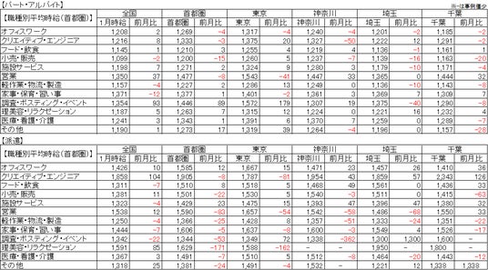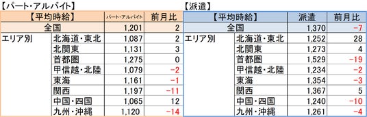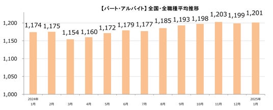 【パート・アルバイト】全国・全職種平均時給は1,201円。前月比+2円。前年同月比+27円。