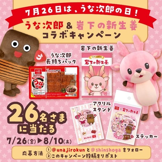 【7月26日から!うな次郎くん X で うな次郎くん&岩下の新生姜コラボキャンペーン実施】