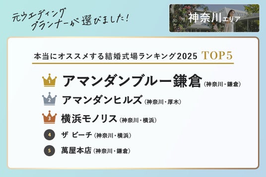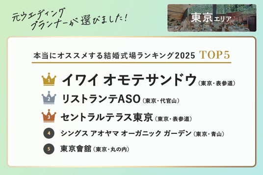 「本当にオススメする結婚式場ランキング<2025関東版>」は、LINEでできる式場探し『トキハナ』が、「結婚式を検討しているふたりに、不安を感じず式場探しを楽しんでもらいたい」「本当にオススメする結婚式場で幸せになってもらいたい」という思いのもと、自社の元ウェディングプランナー28名に調査を行い、忖度なしの本音をリサーチしたものです。