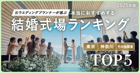 2023年に発表した関東版ランキングでは東京の会場に多くの票が集まり、大変ご好評をいただきました。「他のエリアの情報も知りたい」といった多くのお声を受け、この度、関東を3つのエリア(東京、神奈川、その他〔千葉・埼玉・茨城・栃木・群馬〕)に分けて「本当にオススメする結婚式場ランキング<2025関東版>」を実施し、その結果を発表します。