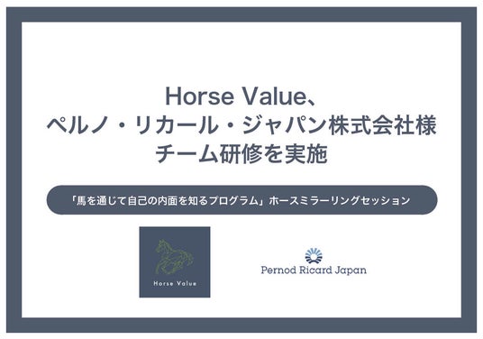 「馬の社会的価値を高める」をビジョンに複数事業を展開する一般社団法人Horse Value(本社:福島県南相馬市、代表理事:神瑛一郎、以下「当社」)は、ホースミラーリングセッションをペルノ・リカール・ジャパン株式会社様のチーム研修として、6月14日に実施いたしました。ペルノ・リカール・ジャパン株式会社は、ペルノ・リカール社を母体とする、酒類の輸入及び販売業務会社です。
