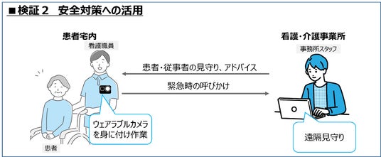 また、DtoPwithN型※3のオンライン診療を進めるなかで、訪問看護・介護の現場におけるウェアラブルカメラの活用による安全対策の強化につながる可能性が見えてきました。