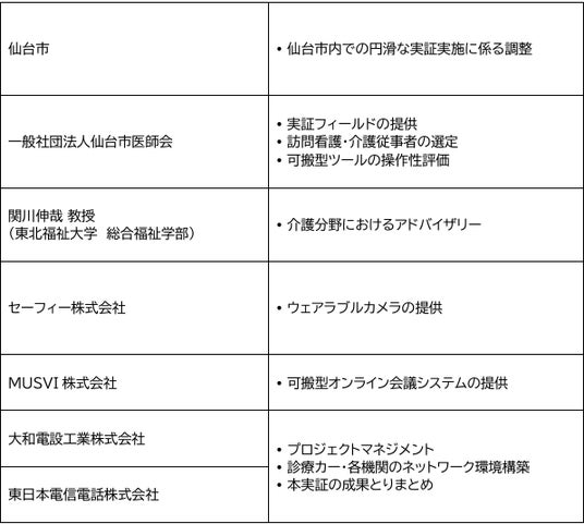 仙台市(市長:郡 和子)、一般社団法人仙台市医師会(会長:安藤 健二郎、以下仙台市医師会)、東日本電信電話株式会社 宮城事業部(執行役員宮城事業部長:須藤 博史、 以下NTT東日本)は、医療・介護分野における高精細・低遅延な可搬型オンライン会議システム及びウェアラブルカメラの有用性を検証することを目的に実証実験を行います。