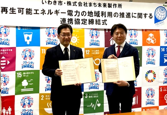 (2024年3月26日、いわき市とまち未来製作所が「再生可能エネルギー電力の地域利用の推進に関する連携協定」を締結)