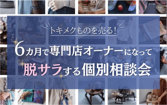 今回の『トキメクものを売る!6ヶ月で専門店オーナーになって脱サラする個別相談会』の募集期間は2月11日~2月20日まで。相談会では、事前アンケートをもとに、一人一人に合わせたあなただけの「専門店のつくり方」をご提案させていただきますので、予約数が上限に達した場合には早めに締め切らせていただく場合もございます。