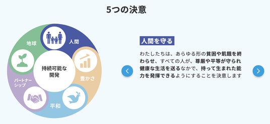 ところでSDGsでは17のゴールと169のターゲットがよく知られていますが、実はその前には5つの決意があります。その一つが「人間を守る」です。これは、すべての人が尊厳や平等が守られた健康な生活を送る中で、生まれ持った能力を発揮できるようにするという決意です。