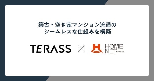 不動産仲介関連サービスを提供する株式会社 TERASS(東京都港区、代表取締役:江口亮介、以下TERASS)と、テクノロジーで気軽な住み替えをサポートする株式会社property technologies(東京都渋谷区、代表取締役社長:濱中 雄大、証券コード:5527)のグループ会社である株式会社ホームネット(以下「ホームネット」)は、新築マンションの供給戸数減少や価格高騰を受けて高まる中古マンション流通、さらには社会課題である「空き家問題」の過半を占める空き家マンション流通を含めた中古住宅市場のさらなる活性化に向け、事業提携を行います。