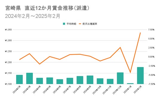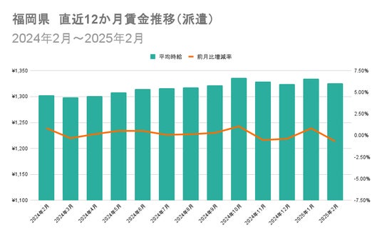 2025年2月度の派遣市場では全国的に賃金が上昇し、減少が見られたのは2県に限られました。