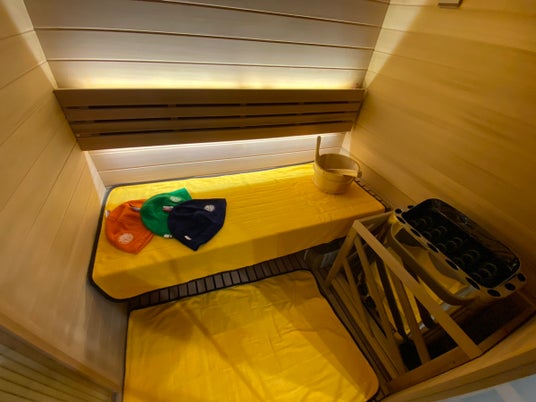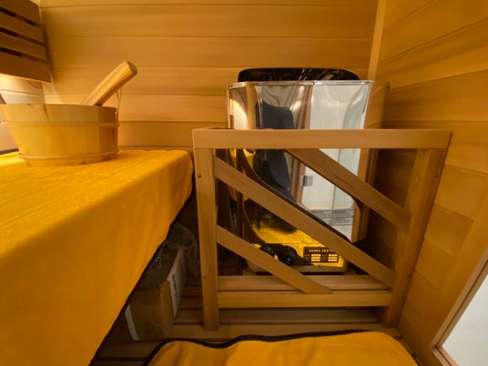サウナスペースを綺麗に収めたコンパクトな設置になっている