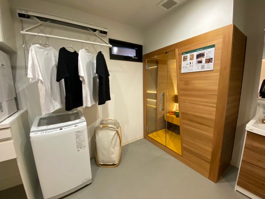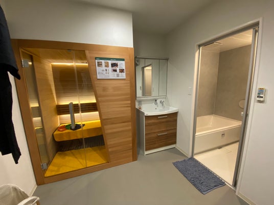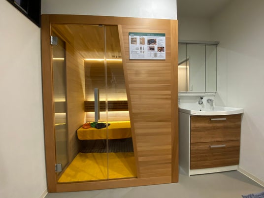 展示場の洗面所スペースにkokolo sauna CUBE 3Wを設置