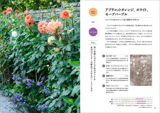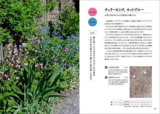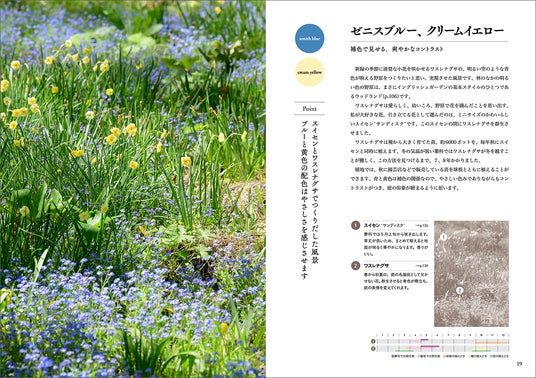 本書には、登場した植物の栽培カレンダーもついており、庭づくりで著者が実践していること、植物の植え方や管理のポイントも掲載。