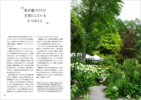 自ら植物を選び、35年庭づくりをしている著者が自身の経験や思いから、庭の管理や花のこと、そしてイングリッシュガーデンの歴史やスタイルをわかりやすい言葉で伝えます。