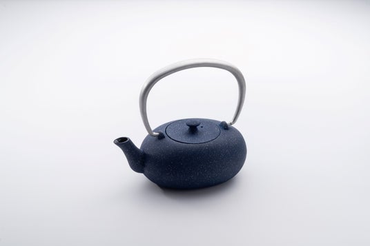 従来と異なる素材のため、鋳造ノウハウをまとめあげることに苦労しましたが、世界で初めて自動車鋳物部品の鉄廃材を再利用した急須・冷酒器を創りあげることができました。形状は天空に舞うひらぐもです。日本を象徴する色として外国からも「ジャパンブルー」と評される藍色を用いました。ミッドナイトブルーにも見紛う深みのある色に星を散りばめ、夜空をイメージできると思います。また形は、雪に覆われた山形の霊峰月山です。新時代へ向けての「新伝統と創造」です。日本茶の急須として、紅茶、中国茶などの茶器としてはもちろん、コーヒードリップ用のポットとして、さらに、燗瓶や冷酒などの酒器としてもご利用いただけます。