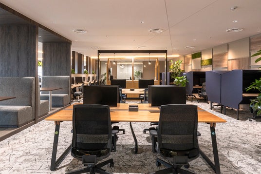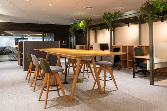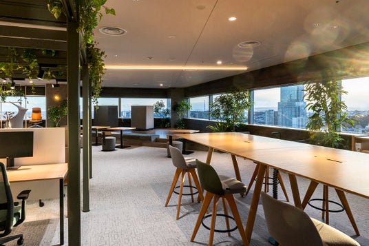 この緑あふれる美しい街並みを一望できる開放的な空間で、プラスはお客様それぞれに最適なオフィスのかたちを見つけるお手伝いをいたします。