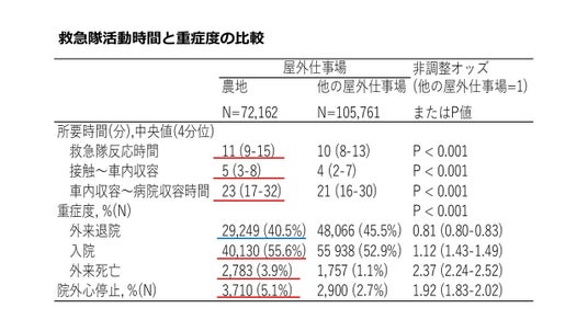 論文名:Higher Incidences of Severe Medical Emergencies and Poorer Out-of-Hospital Cardiac Arrest Outcomes in Farmlands Compared to Other Outdoor Workplaces