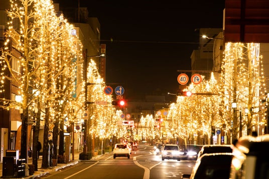 沿道に約10万本もの灯がともるイベント。キャンドルの優しい灯と雪が幻想的です。
