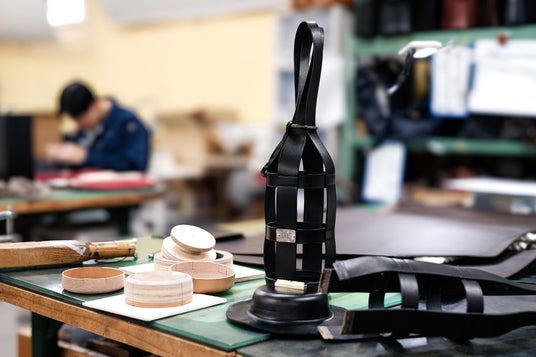 底のパーツには、ソメスサドルの得意とする絞り加工を施し、ボトルを固定させる部品には、馬がくわえる「ハミ」などに使われる実際の丸カンを使用するといったこだわりの仕様も今回のコラボレーションならではのアイデアです。