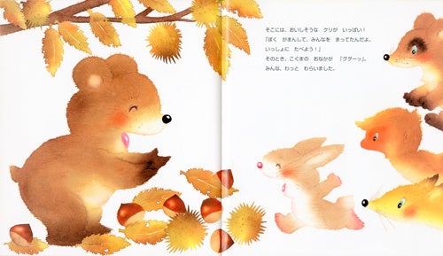 「ぼくの番だよ」と言って、ぶらんこをひとじめ。きつねとうさぎさんは、しぶしぶよそへ行ってしまいました。たぬきさんたちがせっかく作った砂山を壊したり、おさるさんが食べていたりんごをひとりじめしたり、気がつくとこぐまさんはひとりぼっち。楽しくありません。すると、りすさんたちが仲良くぶどうを食べている様子を見て、こぐまさんは大事なことに気づきます…。