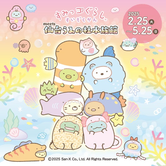 サンエックス株式会社(本社:東京都千代田区)は、「仙台うみの杜水族館」(宮城県仙台市)と「すみっコぐらし」のコラボレーション企画『すみっコぐらしすいぞくかん meets 仙台うみの杜水族館』が2025年2月25日(火)~5月25日(日)の期間で開催されるにあたり、限定コラボメニューなどが新たに公開されたことをお知らせします。