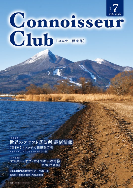 コニサー倶楽部(vol.7)表紙:福島県の磐梯山と猪苗代湖。磐梯山の麓にある天鏡蒸溜所は、2024年から本格生産を始めた。