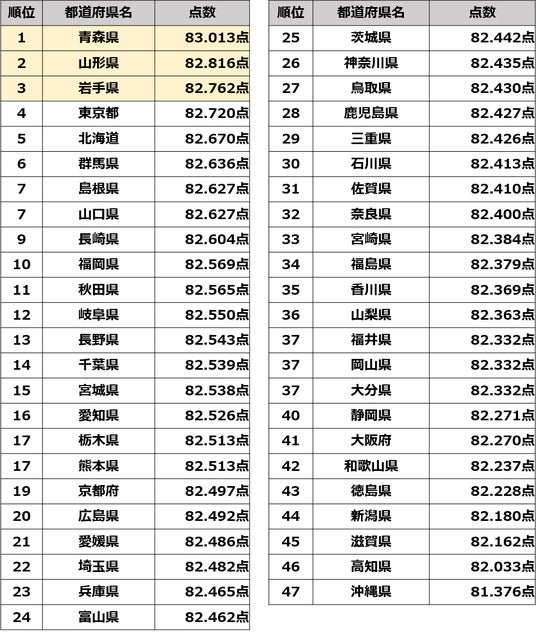 その結果、青森県が83.013点の最高得点を獲得、“歌うま県No.1”に決定しました。次いで2位が山形県、3位が岩手県と、東北3県がトップ3を独占しました。