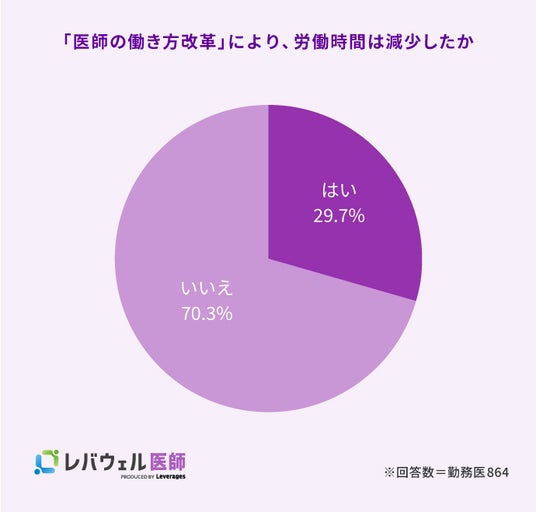 レバレジーズメディカルケア株式会社が運営する医師に特化した人材サービス「レバウェル医師」( https://levwell-ishi-agent.jp/lp/1/ )は、勤務医864名を対象に、「医師の働き方改革」 施行以降の医師の就業実態に関する調査を実施しました。