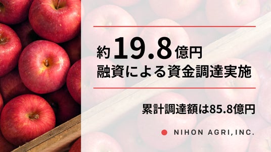日本の農産物の生産から販売まで一気通貫で展開し、新たな産業構造を創出する株式会社日本農業(本社:東京都品川区、代表取締役CEO:内藤祥平、以下「日本農業」)は、流通事業の拡大に伴い、りんごの仕入資金の確保として、株式会社三井住友銀行、株式会社七十七銀行、株式会社あおぞら銀行などから融資により約19.8億円の資金調達を実施いたしました。今回の資金調達により、累計の資金調達額は約85.8億円となりました。